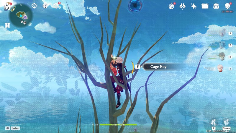 檻の鍵は一番高い木にあります。ロックされたNPCの近く。