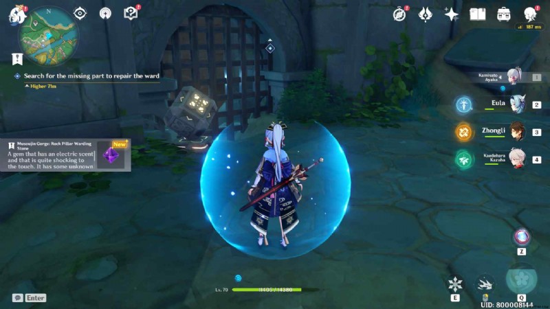 プレイヤーは再び Elemental Sight を使用して、ウォードにないロック ピラー パールとロック ピラー ウォーディング ストーンを見つけることができます。石は、区の左側にあるシャフトにあります。