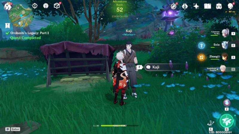 プレイヤーは、カジと呼ばれる NPC と話すことで、オラバシのレガシー ワールド クエストのロックを解除できます。彼は藤頭砦と夢想神峡の間にあるキャンプの近くで発見されました.