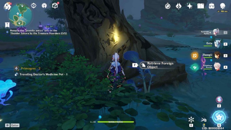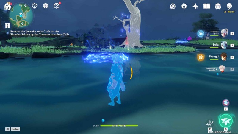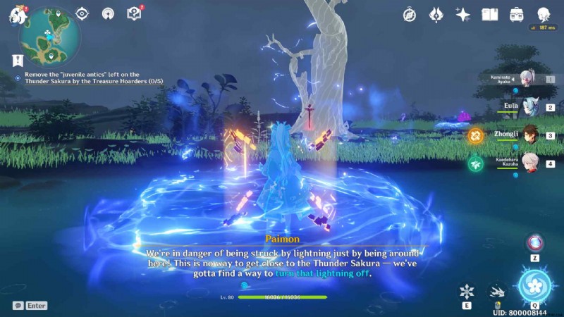 Genshin Impact の一部である少年のおふざけを取り除く プレイヤーは九条野営地の近くにいるミユキと呼ばれるNPCから得ることができるサクラアーボリズムのワールドクエスト。クエストのこのセクションでは、プレイヤーは雷桜の木の幹から異物を取り除く必要があります。ただし、木は継続的にプレイヤーに稲妻を投げつけるため、木に近づくことはできません。