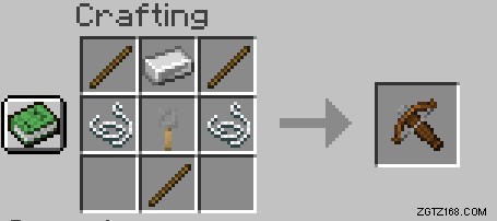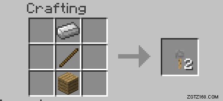 マインクラフトで 、プレイヤーは、鉄のインゴット、棒、および任意の種類の厚板の 1 片を使用して、トリップワイヤー フックを作成できます。