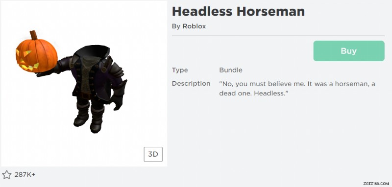 それはさておき、毎年 10 月 31 日に Headless Horseman バンドルが公開されます。ヘッドレス ヘッドの装飾品が必要な場合は、バンドル全体を購入する必要があります。