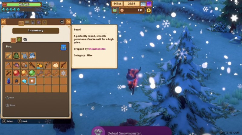 スノーモンスターを待ち伏せすると、真珠がドロップします .時々、金の鍵もドロップします。モンスターを倒して真珠を袋に入れると、疑わしい取引クエストが完了します。