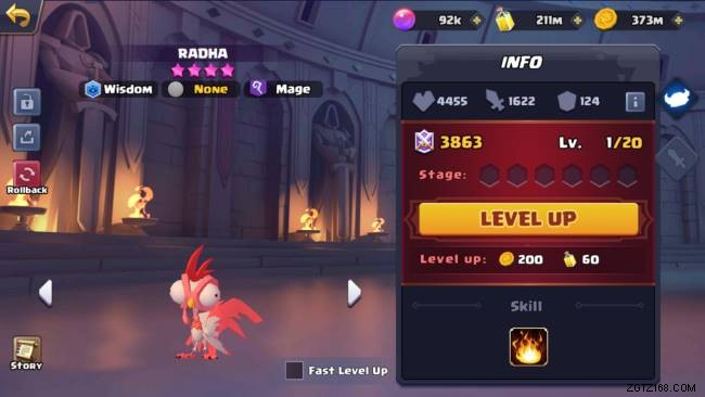 Radha は派閥のない 4 つ星の知恵の魔道士でした。 Radha には、火の玉のアイコンが付いたスキルが 1 つしかありませんでしたが、そのスキルが何をしたかはわかりません。トムの燃焼実験と同じアイコンなので、魔法攻撃強化の一種だと思います。