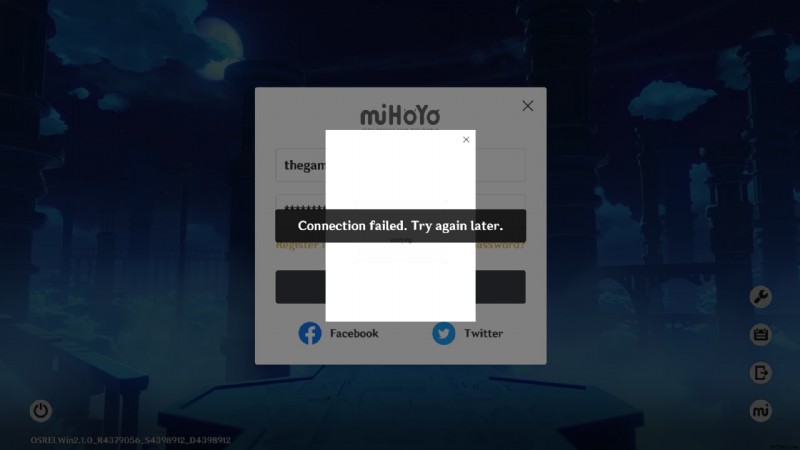 2 つ目の「ログインできない」問題は、Genshin Impact サーバーがダウンしたときに発生します。この場合、問題の解決は私たちの手にはありません。 miHoYoが問題を修正するまで待つ必要があります.そして、サーバーが再び戻るまで待ちます。