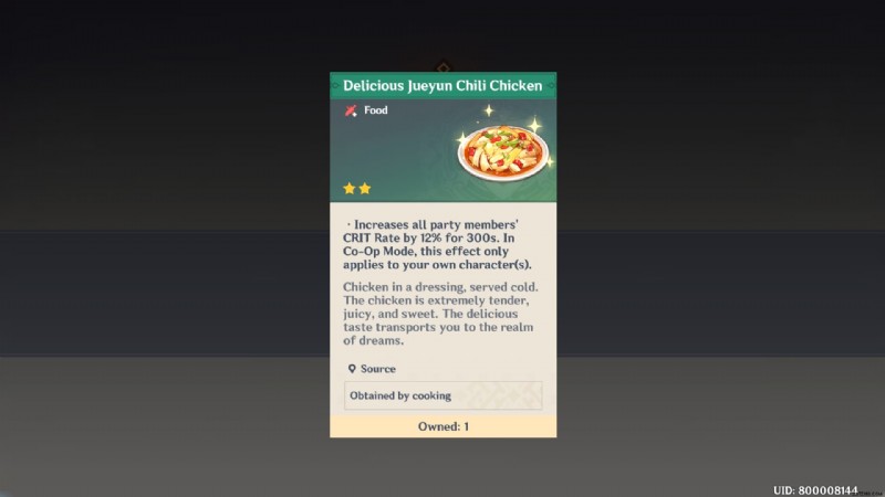 それでおしまい。必要な材料があれば、Genshin ImpactでJueyun Chili Chickenを作ることができます.