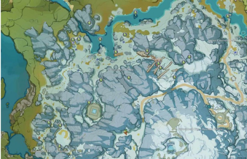 先に述べたように、Path of Austere Frost では、プレイヤーは Mondstadt の Dragonspine 地域で Moonchase Charm を探す必要があります。