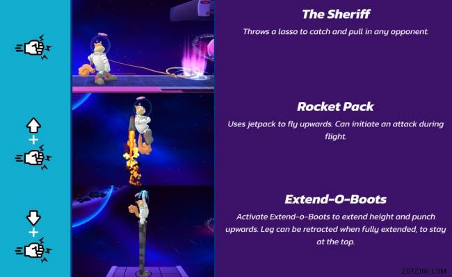 エクステンド オー ブーツ (5%):サンディはエクステンド オー ブーツの助けを借りて空中に舞い上がり、衝突したものすべてにダメージを与えます。ブーツが伸びきった後に再度専用ボタンを押すとブーツが収納され、サンディはニュートラルな空中状態になる。タイミングが良ければ、エクステンド オブ ブーツを利用して地上から空中への素早いコンボを行うことができますが、これはかなりトリッキーです。この必殺技のコツはつかめませんでしたが、これを利用して素敵なコンボを設定できると思います。