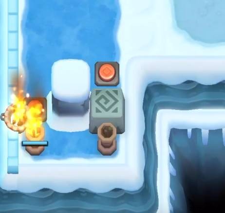 これはちょっと難しいパズルです。あなたの目標は、赤いボタンを押して松明に火をつけることです。松明は 3 つあり、すべての松明に火をつけないと氷塊が降りてきません。松明は赤いボタンをタッチしてからほんの一瞬しか点灯しないので、すばやく移動する必要があります。