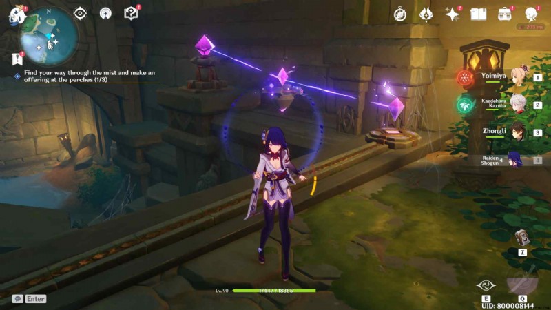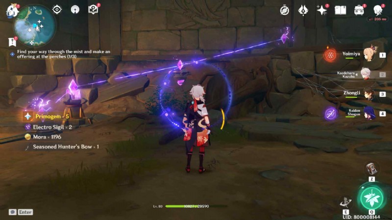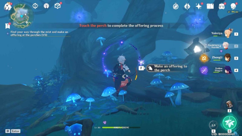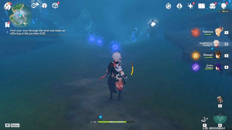 Through the Mist—特に特定の著者の世界クエスト中に、原神インパクトのプレイヤーは霧の中で自分の道を見つけ、止まり木に供物をするように求められます.クエストのこのセクションでは、プレイヤーは知来神社、尻コロ峰、大井名浜の西にある止まり木で供物をしなければなりません。