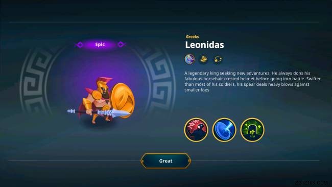 ギリシャは、伝説の王レオニダスの故郷です。彼は強力な戦闘機であり、戦闘で自分自身を保持することができます.レオニダスはバトル クライにアクセスできます フン・フナプと同じように、イージス シールドも持っています。 、これにより、入ってくる攻撃をブロックする可能性が高くなります.