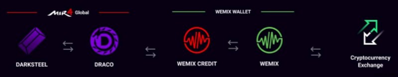 要約すると、プレイヤーは MIR4 で貴重なリソースを採掘できます DRACO と呼ばれる特別な通貨に製錬することができます。その後、DRACO は Darksteel に交換するか、暗号通貨のように使用できる WEMIX ウォレットに転送することができます。