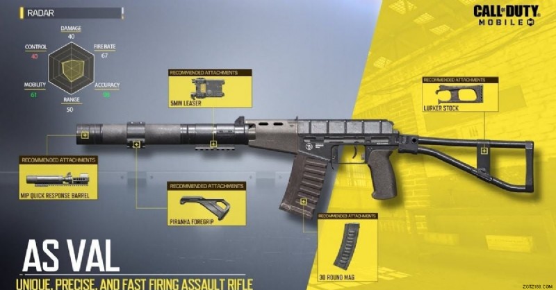 提案されたロードアウトを試して、いくつかの試合をプレイしてください。その後、AS VAL を好きなように修正できます。そしておそらく、ほんの数秒で敵を破壊するユニークで強力なライフルを作成するでしょう.