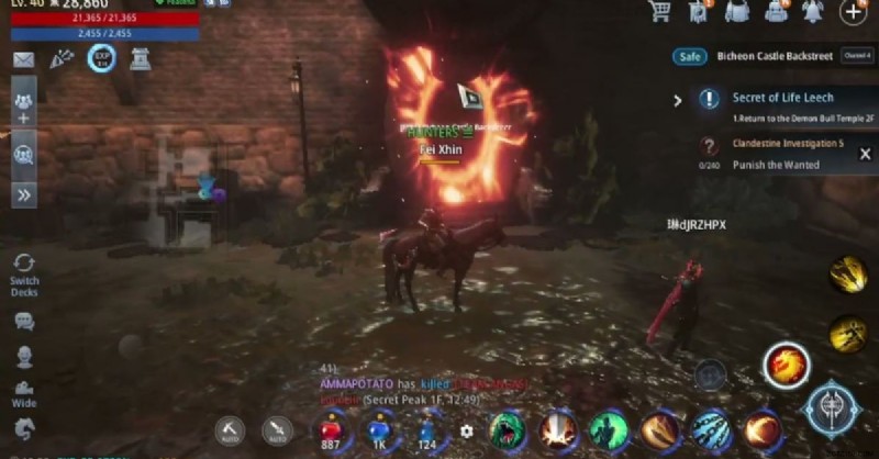 このクエストを選択したら、マップを開いて飛川エリアに移動し、飛川城をクリックします。そして飛川城裏通りに向かいます。そこに着いたら、赤いポータルに入り、ビチョン城裏通りのエリート バージョンに移動します。ここでしか指名手配者を見つけて罰することができます。マップの左側、下から 2 番目の部屋にある Twinway クラン リーダーの Noh Wunjang で、240 人の儀仗兵を倒す必要があります。統計が十分に高ければ、このクエストを 15 ~ 20 分で完了するのは難しくありません。