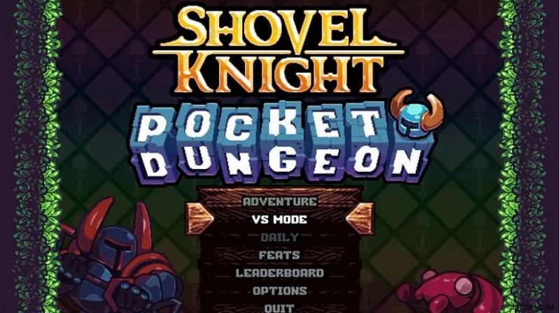 プレーヤーは、ゲームのメイン メニューから、ショベル ナイト ポケット ダンジョン デイリー ゲーム モードにアクセスできます。 VSモードの真下にあります。