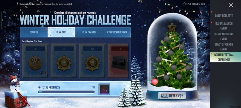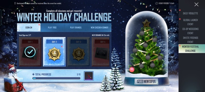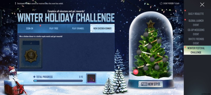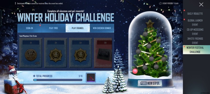 PUBG ニュー ステート ウィンター フェスティバル チャレンジ