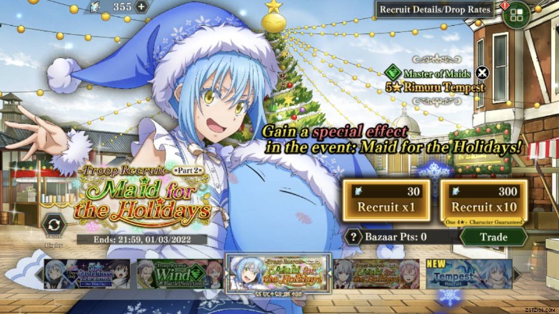 このイベント期間中にリクルートするたびに、行ったリクルートの数に等しいバザーポイントを獲得できます。したがって、新兵 x1 で 1 バザー ポイントが得られます。 バザー ポイント 200 でマスター オブ メイドのリムル テンペストと交換できます。 ただし、これはなんと 6,000 個のマジクリスタルになることを覚えておいてください。