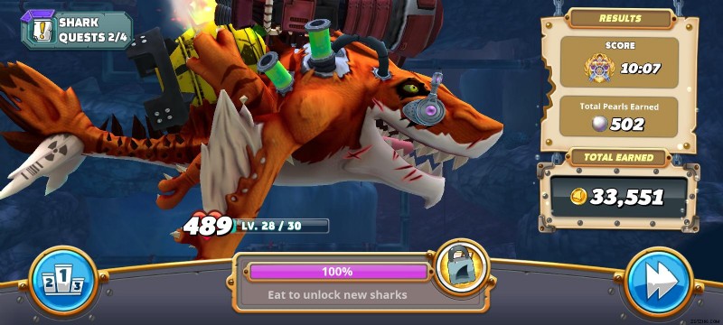 ハングリー シャーク ワールドでパールを獲得するには 3 つの方法があります。 1 つ目は、できるだけ長く生き残る必要がある Extinction モードをプレイすることです。 サメが長く生き残るほど、最終的に得られる真珠の量が多くなります。 2 つ目の方法は変異です。これらは、ゲームプレイを難しくするいくつかの追加のゲームプレイの変更を追加する特別な変更です .ただし、より多くのパールを獲得できます。最後の方法は、さまざまなイベント内にあります。パールがもらえるタスクや実績がたくさんあります。