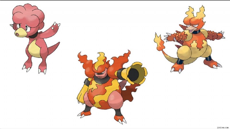 マグビーを進化させると、マグマーとマグモルタルが手に入ります。