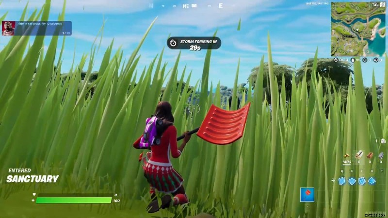 Fortnite で 10 秒間 Stealth Grass を見つけて隠れるための専用ガイドです。
