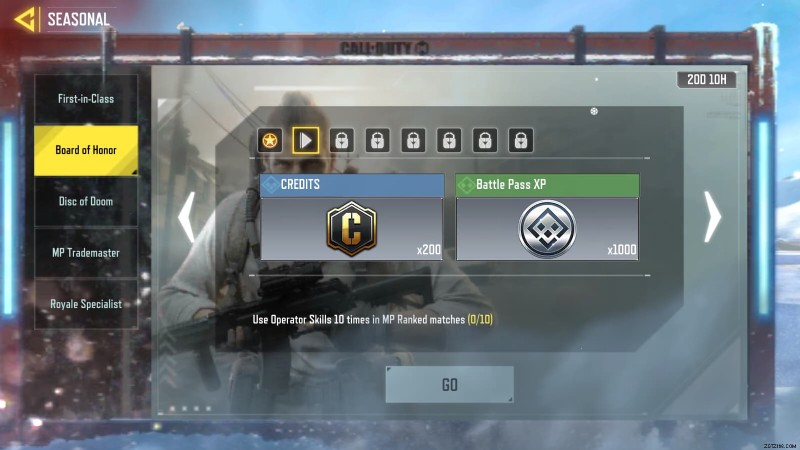 - MP ランクマッチでオペレーター スキルを 10 回使用する :200 クレジットと 1000 バトルパス XP。