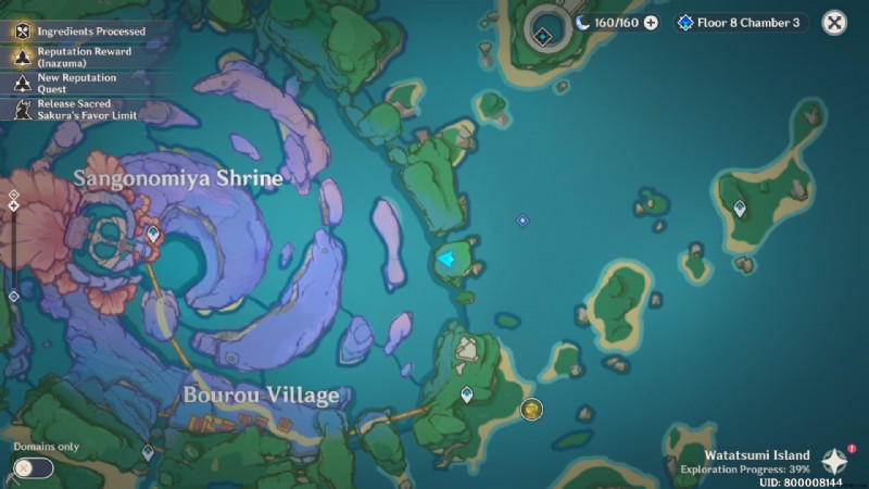 上のスクリーンショットのプレイヤー アイコンの場所に移動して、The Still Water's Flow ワールド クエストを進めるための 2 番目の Key Sigil を見つけます。