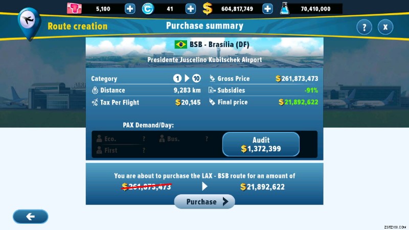 ルートを購入したので、先に進んで最初のフライトをスケジュールしてください。適切な飛行機を選択し、必要に応じて購入します。これにより、議題の最初の目標の別の 1 つが達成されます。次に、監査で確認した情報に従ってスケジュールを設定します。スケジュールが適切であるほど、飛行機はより効率的に運航できます!