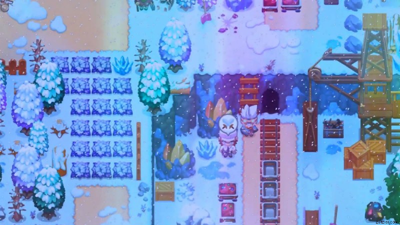 凍ったツンドラにワープし、3 人の人がいるキャンプファイヤーが見えるまで南に向かいます。東に進み、はしごを降りて洞窟に入ります。洞窟の中で、南東に向かい、氷の湖を通り過ぎます。トロッコのレールに沿って進むと、金庫室の扉にたどり着きます。