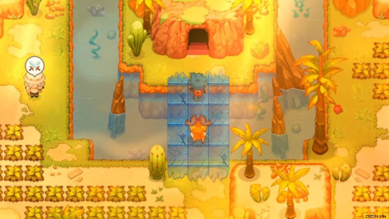 ラテリアのワープポイントから東に進み、荒野に出ます。小さな島のあるエリアに到達するまで、東に向かって進みます。水を凍らせて橋を作り、洞窟に入ります。まっすぐ北に向かい、保管庫に行きましょう。