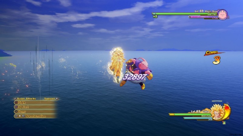 使用する最高の攻撃戦略については、魔人ブウは できるだけ早く破壊する ことを目指すべきボスの 1 つです。 .遠隔特殊攻撃を避け、代わりにスタンダメージを与えることができる攻撃をできるだけ多く使用します。フルコンボにならずに繰り返しても構いません。魔人ブウはあまりにも簡単にコンボから抜け出し、赤いオーラのチャージ攻撃でカウンターを受けずに長いコンボを行うことはできません。