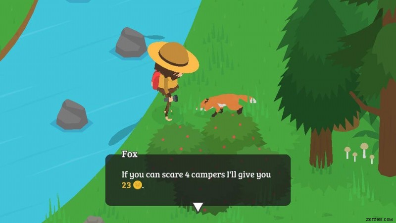 ゲームのある時点で、コインと引き換えに 4 人のキャンピングカーを怖がらせるキツネに出会います。キャンピングカーを怖がらせる必要はありますが、レンジャーに捕まりたくはありません。したがって、この挑戦を試みている場所に注意し、変装していない間はパーク レンジャーを避けてください。
