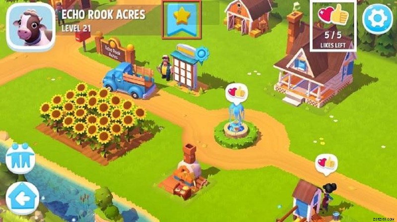 ホーム ファームに戻るには、画面の左下隅にある [ホーム] ボタンをタップします。近所の人に 1 日あたり 5 つのギフトを贈ることができるので、みんなのお気に入りの隣人になることもできます!