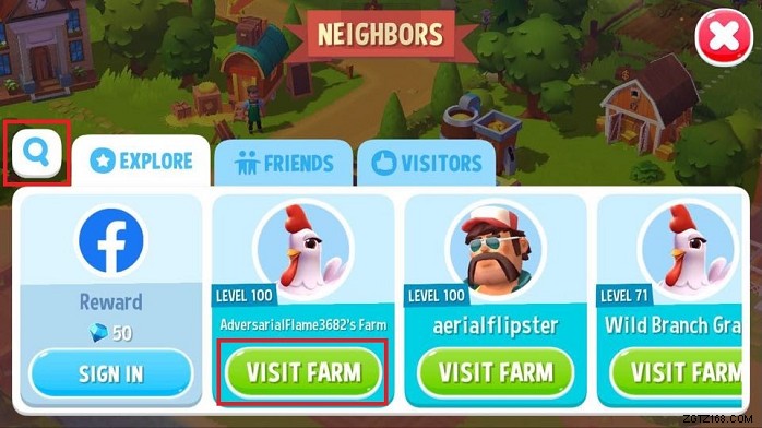 次に、隣人のプロフィールをタップして、[農場に行く] ボタンをタップする必要があります。 隣人を訪問すると、毎日さまざまな隣人から最大 5 つの訪問報酬を集めることができます。