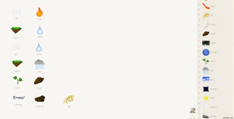 しかし、ご存知のように、Little Alchemy で何かを作るには、一連のアイテムの組み合わせが必要です。ゲームを開始するときは、風、土、火、水の 4 つの要素だけで開始します。