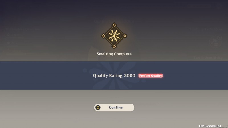 [Smelt Firework] をクリックして、製錬プロセスを開始します .花火の精錬を成功させるには、次の 3 つのパラメーターを確認する必要があります。