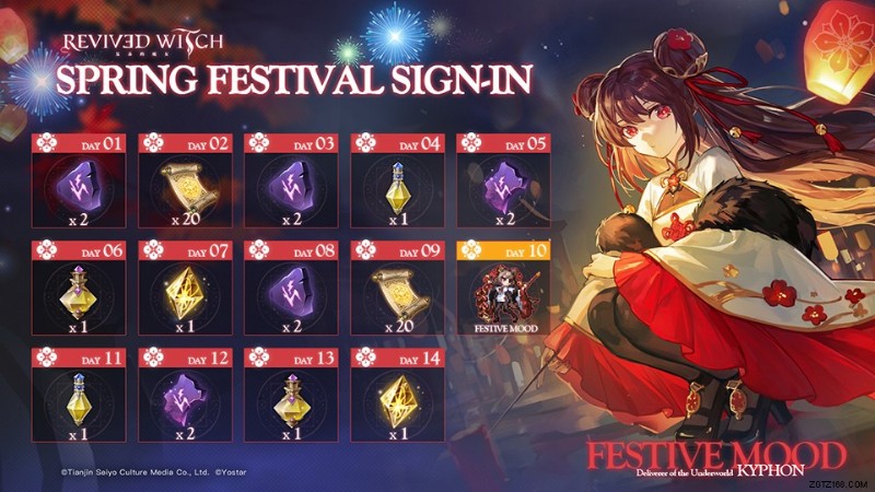 その間、2022 年 2 月 15 日まで毎日復活した魔女にログインしてください。春祭りチェックイン イベントが開催され、ルーンストーン、スタミナ フラスコなどの素晴らしいゲーム内報酬が手に入ります。 、スタミナ エリクサー、高度なスキル パクト、魂の氷晶石。
