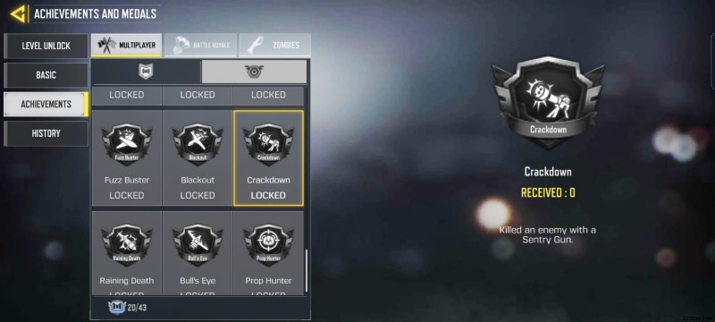 Call of Duty:Mobile には、ゲーム内の特定のミッションを完了することでプレイヤーが獲得できるさまざまなメダルが用意されています。執筆時点で、マルチプレイヤー タイトルには 86 を超えるメダルがあり、Crackdown もその 1 つです。