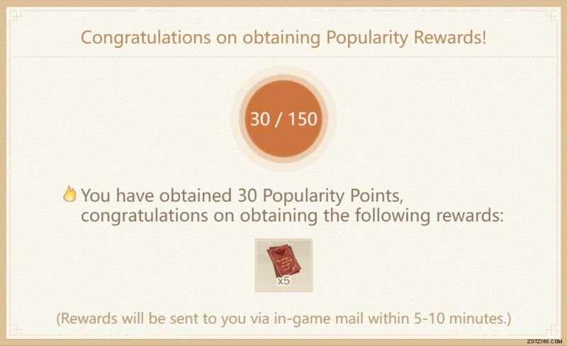 人気レベルの報酬: