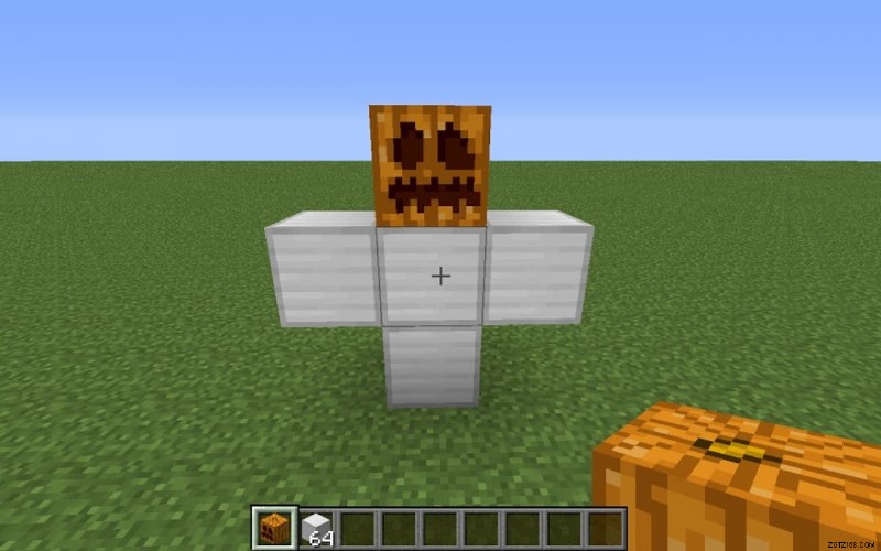 Minecraft でアイアン ゴーレムを作るには、合計で 36 個の鉄インゴットが必要です .まず、36個の鉄インゴットを使って4つの鉄ブロックを作る必要があります。クラフト後、鉄ブロックでT字型を作ります。最後に、彫刻したカボチャを中央のブロックの上に置きます。