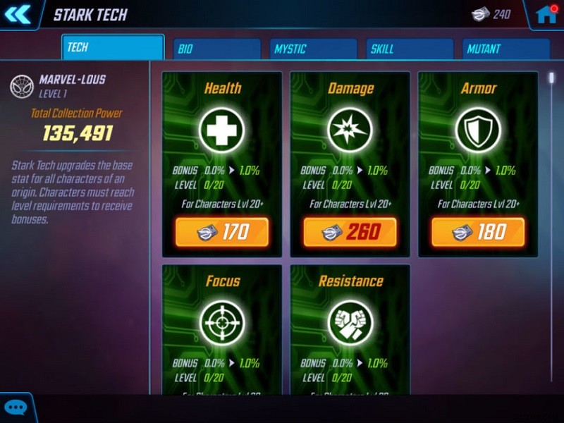 Stark Tech は、アップデート 2.0 で Marvel Strike Force に導入された新しい進行形です。このシステムにより、プレイヤーは毎日の同盟寄付を通じて獲得した同盟クレジットを使用することができます。これらのクレジットを使用すると、Origin 全体のアップグレードが名簿に適用されます。このシステムは最初は新しくて楽しいものでしたが、最終的には多くのプレイヤーがそれほど面白くなく、予期していなかった突然の新しい深みのあるカスタマイズに混乱し、圧倒されました.
