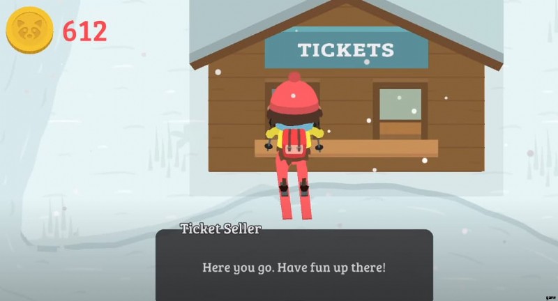 スニーキー サスカッチのスキー マウンテンに登るには、スキー リフトのチケットが必要です。スキーリフトの左側にチケットカウンターがあります。そこに着いたら、ロッジを見つけるために左に進みます。または、コインを使用してチケットを購入し、スキー マウンテンの頂上に向かうこともできます。