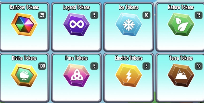 合計で、12 種類のエレメンタル トークンがあります .これらは Legend、Terra、Pure、Water、Electric、Light、Dark、Plant、Sea、Metal、Ice、Flameです。 .これらがおなじみのように聞こえる場合、それはそれぞれがドラゴンの要素に関連しているからです。ドラゴンが入る生息地は、それをアップグレードするために必要なトークンのタイプにどのように関連するかという、その要素によって異なります。