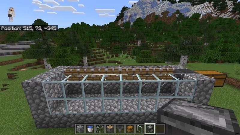 次に、プレイヤーは各ピストンの上に正面を向いたオブザーバーを配置する必要があります。 2 つのブロックで牧場全体の高さを上げます。ホッパーの上に 2 枚のガラス板を置き、ケルプがホッパーに落ちるのを助けます。