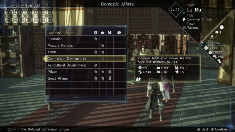 Dynasty Warriors 9 Empires のコンクエスト モードのストーリー シナリオの各ターンで、特定のアクションを完了することができます。 これは、領土の防御を改善したり、同盟を築こうとしたりするなど、さまざまな方法で王国に利益をもたらします。ただし、新しい領土を征服するたびに最初に検討する必要があるのは、商業および農業の開発に着手することです。