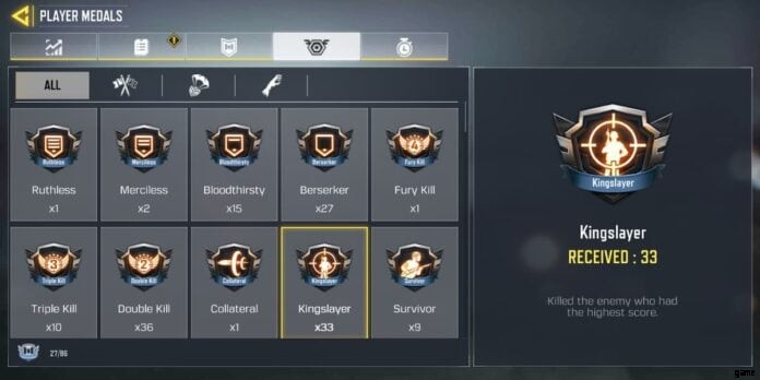 Call of Duty:Mobile には、ゲーム内の特定のミッションを完了することでプレイヤーが獲得できるさまざまなメダルが用意されています。執筆時点で、マルチプレイヤー タイトルには 86 を超えるメダルがあり、キングスレイヤー メダルもその 1 つです。