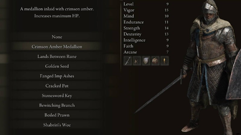 深紅の琥珀のメダリオンは、ゲーム序盤のメダリオンで、最大 HP をわずかに増加させます。メダリオンは基本的に、過去の Souls の新しいリングに相当します。 彼らはあなたにパッシブボーナスを与えるので、ゲーム。最大 HP ブーストは素晴らしいものですが、The Lands Between を探索していると、通常これらの 1 つを見つけることができます。