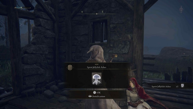 横向き座りエモートとクラゲの灰を入手できます 、ロデリカと呼ばれる NPC から、魔女のレナから入手したスピリット コーリング ベルを使用してクラゲ スピリットを召喚するために使用できます。 .