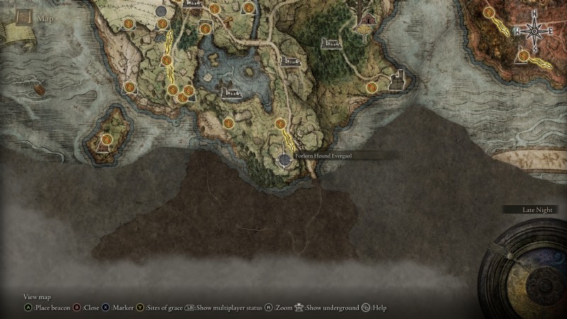 Steam デッキのエルデン リングにある Forlorn Hound Evergaol の場所