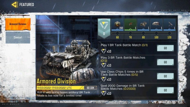 先に進む前に、機甲師団のイベントが 3 月 10 日まで続くことに注意してください。したがって、時間切れになる前に、以下にリストされているタスクを完了してください。