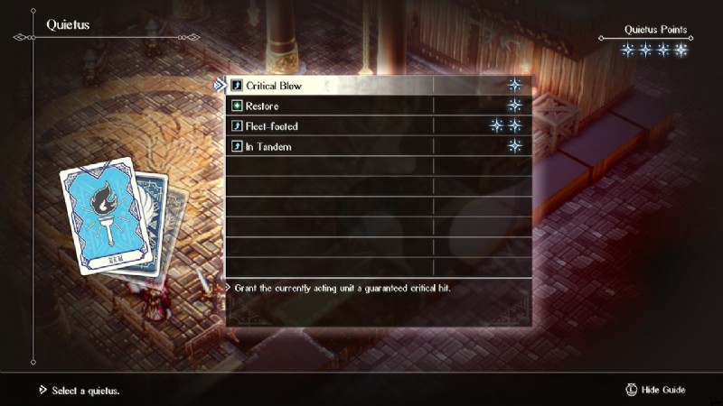 Quietuses は便利ですが、決して乱用することはできません。 各クワイエタスは 1 回の戦闘で 1 回のみ使用できます 、Quietus Points を消費します 戦闘中はいかなる方法でも元に戻すことはできません。そのため、いったんアウトになると、次の戦闘までクワイエタスを使用できません。
